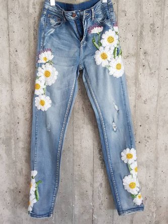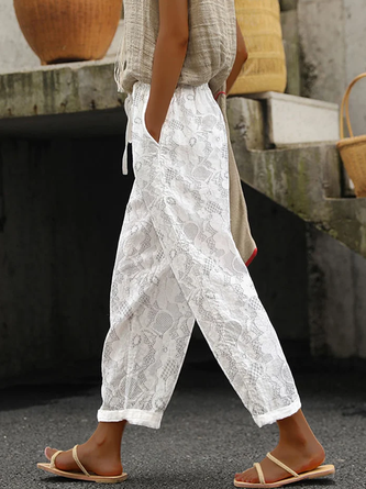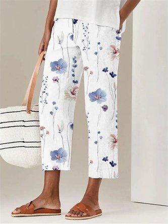 Women's H-Line Baggy Pants Daily Going Out Pants White Casual Printing Floral Spring/Fall Pants