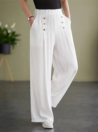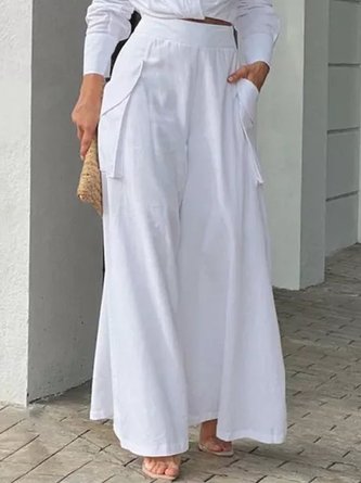 Women's Elastic Waist H-Line Wide Leg Pants Daily Going Out Pants White Casual Split Joint Plain Spring/Fall Pants