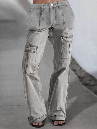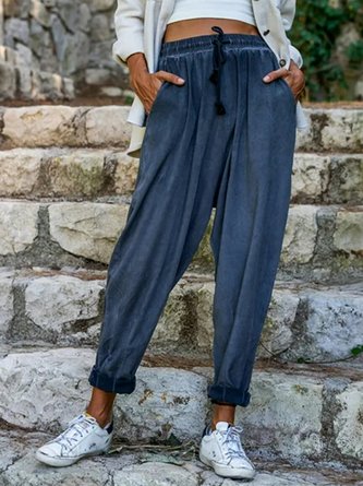 Women Plain Vintage Pant Daily Spring/Fall Straight Pants
