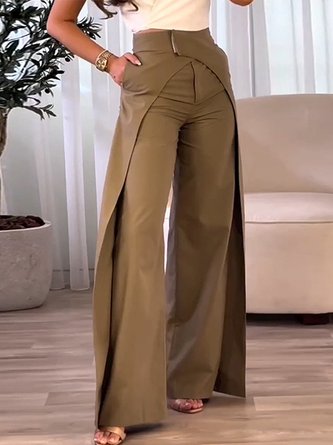 Women Plain Casual Split Joint Pant Daily Spring/Fall Wide Leg Pants
