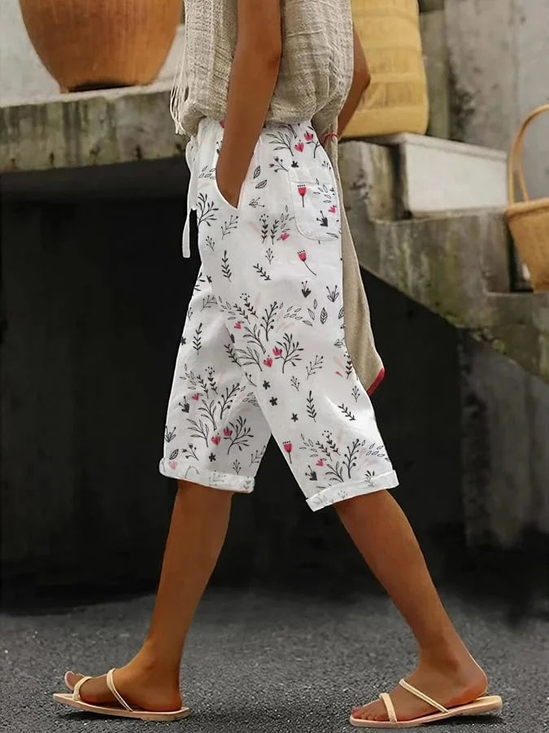 Women's Spring and Summer Floral Print Casual Straight Tie Cropped Pants