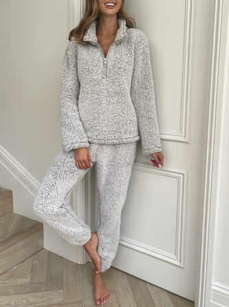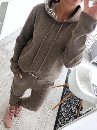 Women Plain Long Sleeve Coat With Pants Casual Printing Spring/Fall Hoodie Two-Piece Set