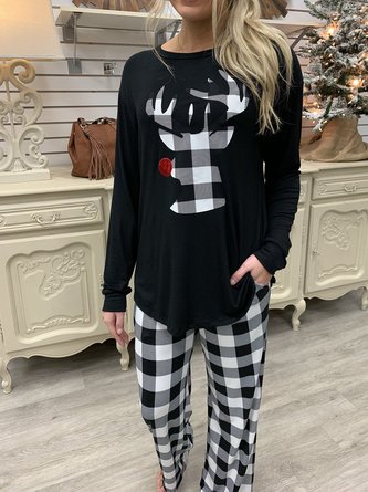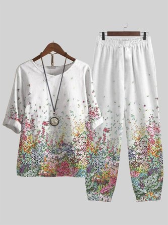 Women Floral Jersey Long Sleeve Top With Pants Casual Printing Spring/Fall Crew Neck Two-Piece Set