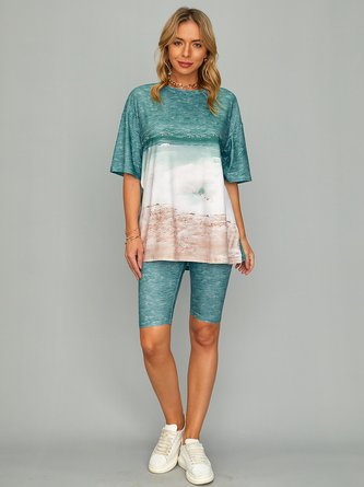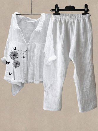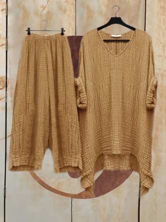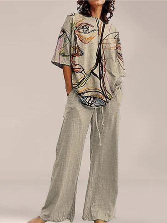 Cotton Loose Crew Neck Casual Two-Piece Set