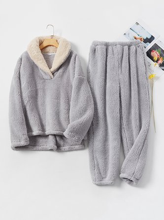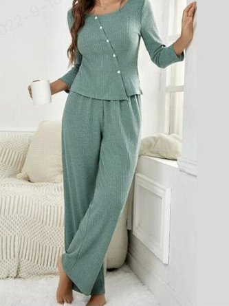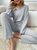 Women Plain Long Sleeve Top With Pants Casual Glitter Spring/Fall Crew Neck Two-Piece Set