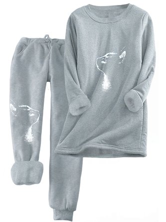 Women's Printing Abstract Daily Going Out Two-Piece Set Gray Casual Spring/Fall Coat With Pants Matching Set