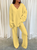 Women Plain Long Sleeve Top With Pants Casual Lace-up Spring/Fall Turtleneck Two-Piece Set