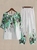 Women's Printing Floral Daily Going Out Two-Piece Set Green Casual Spring/Fall Top With Pants Matching Set