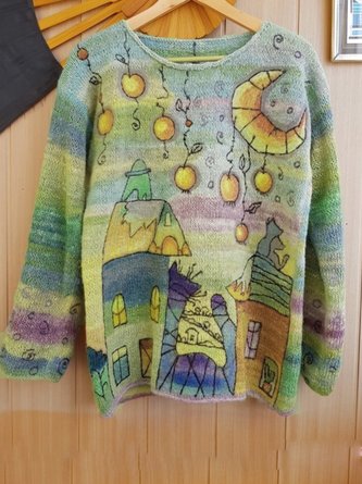 Women Painting V Neck Cotton Long Sleeve Casual Daily Spring/Fall Sweater