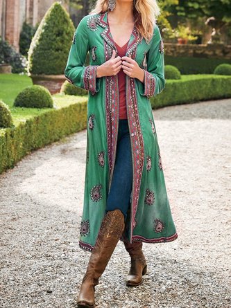Women Floral Crew Neck Long Sleeve Vintage Daily Spring/Fall Cardigan