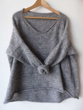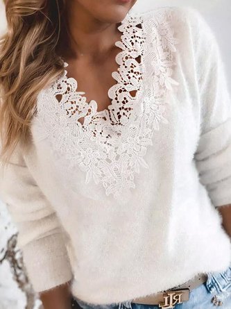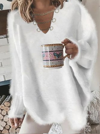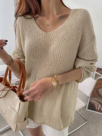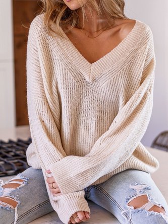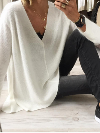 Women Plain V Neck Long Sleeve Street Daily Winter Sweater