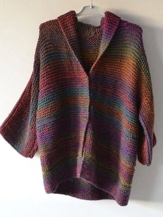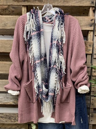 Women Plain Crew Neck Long Sleeve Vintage Daily Winter Cardigan