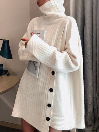Women Plain Turtleneck Long Sleeve Street Daily Spring/Fall Sweater