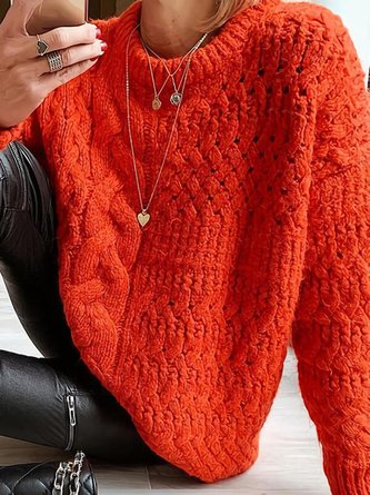 Women Plain Crew Neck Long Sleeve Street Daily Winter Sweater