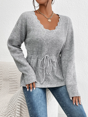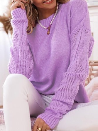 Women Plain Crew Neck Long Sleeve Casual Daily Spring/Fall Sweater