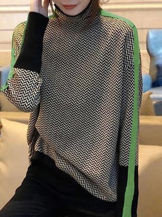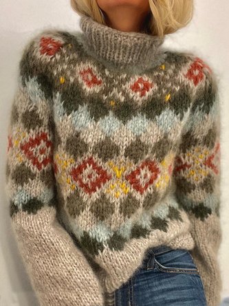Women Abstract Turtleneck Long Sleeve Vintage Daily Spring/Fall Sweater
