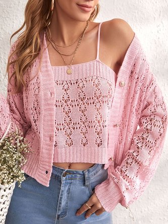 Women Plain Shawl Collar Long Sleeve Vintage Holiday Spring/Fall Cardigan