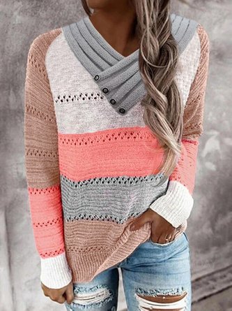 Women Plain Henley Collar Cotton Long Sleeve Casual Daily Spring/Fall Sweater