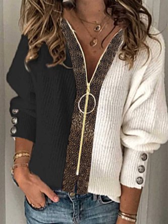 Women Plain V Neck Cotton Long Sleeve Street Daily Spring/Fall Sweater