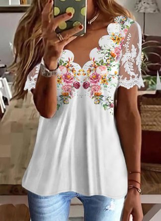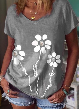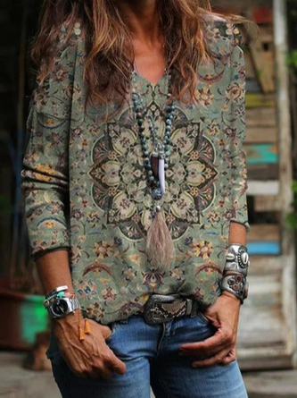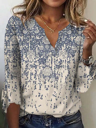 Women Floral V Neck Long Sleeve Casual Daily Spring/Fall T-shirt