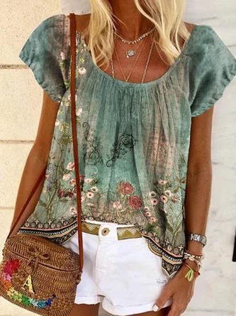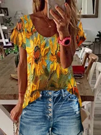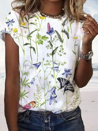 Women Floral Crew Neck Cotton Long Sleeve Vintage Daily Spring/Fall T-shirt