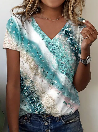 Women Abstract V Neck Long Sleeve Casual Daily Spring/Fall T-shirt