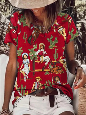 Women Flag Crew Neck Cotton Short Sleeve Casual Daily Summer T-shirt