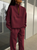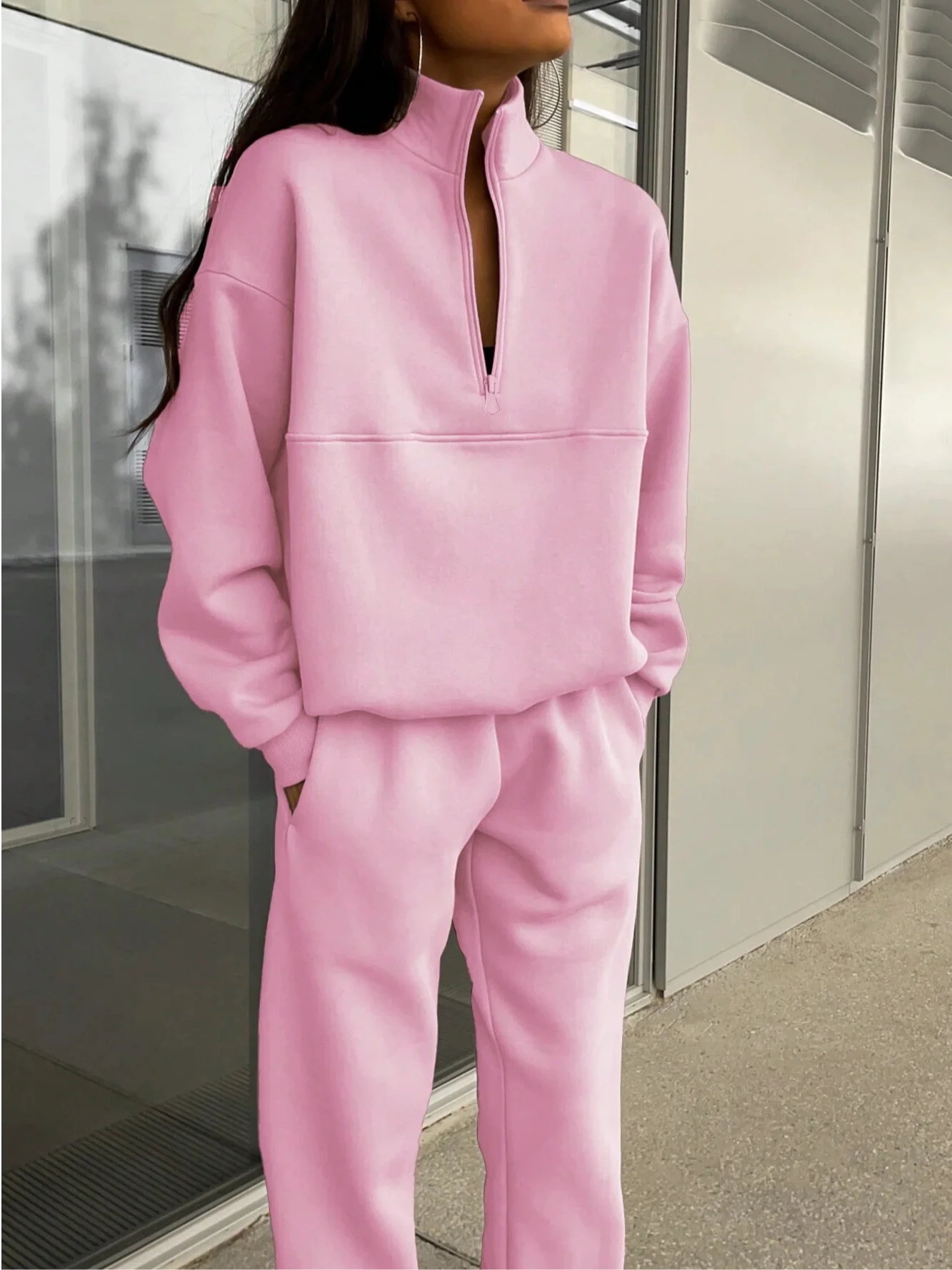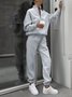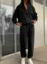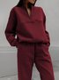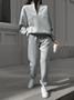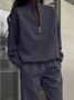 Women Plain Long Sleeve Top With Pants Casual Spring/Fall Half Open Collar Two-Piece Set