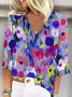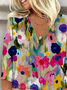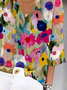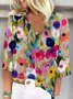 V Neck Casual Floral Loose Shirt