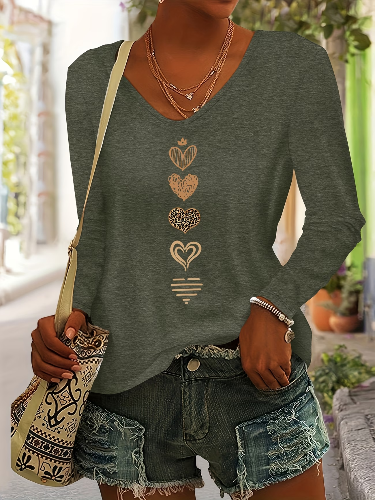 Women Heart/Cordate V Neck Jersey Long Sleeve Casual Daily Spring/Fall T-shirt