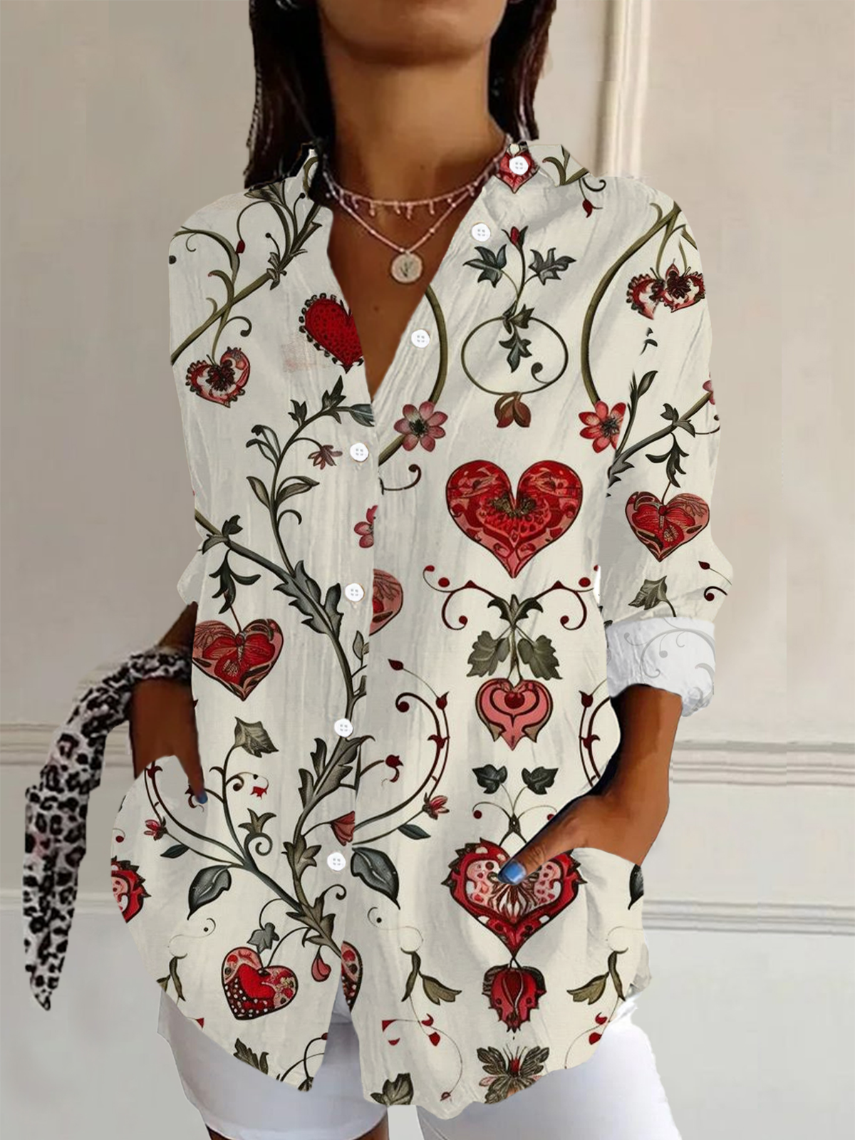 Women's Love Flower Valentine's Day Casual Print Long Sleeve Shirt